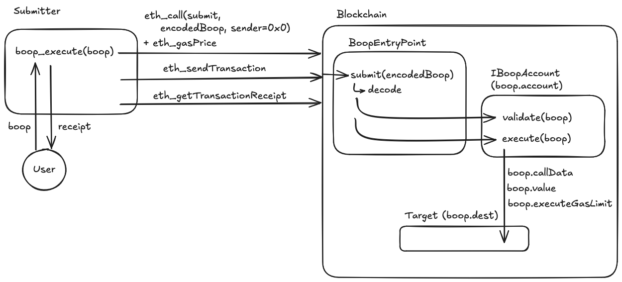 executerequest to the submitter, to which a boop (transaction) is attached. -